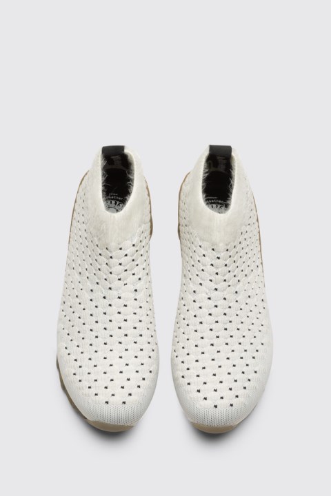 Zigzag Dış Tabanlı Kadın Beyaz Spor Ayakkabı Patik. Alman Moda Tasarımcısı Bernhard Willhelm, Imzası Olan Birlikte Işbirliğini Beklenmedik İşlemler Ve Kullanım Alanı Zikzak Dış Taban Ile Himalayan'ın 10. Yıl Dönümünü Kutlamak İçin Geri Dönüyor.