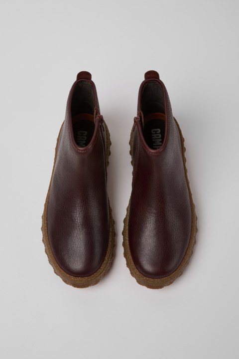 %27 Doğal Michelin Kauçuk Dış Tabanlı Bordo Deri Kadın Bilekte Bot.Ground, Endüstriyel Camper Estetiğine çağdaş Bir Dokunuş Ekleyerek Kentsel Sokak Stilini Yeniden Yorumluyor. Kalın Dış Taban, üstün Tutuş Sağlayan Doğal Kauçuğa Sahiptir.