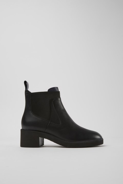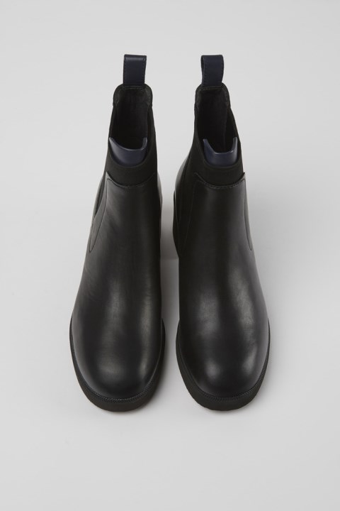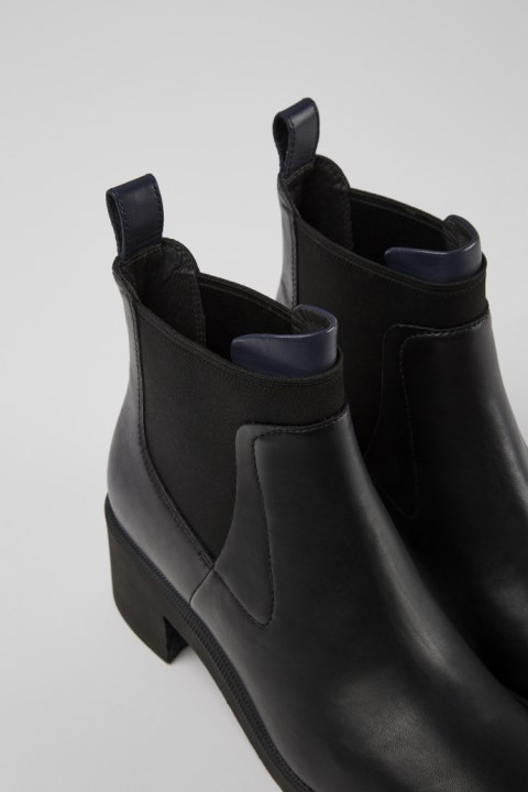 Kalın, Blok Topuklu, OrthoLite® Ayak Tabanlı Ve EVA Dış Tabanlı Siyah Ve Mavi Deri Kadın Bilekte Bot. Wonder, Kalın, Cesur, Temiz Hatlara Ve Hafif, Esnek Bir Yaklaşıma Sahip Orta Topuklu Bir Yapıya Sahiptir.
