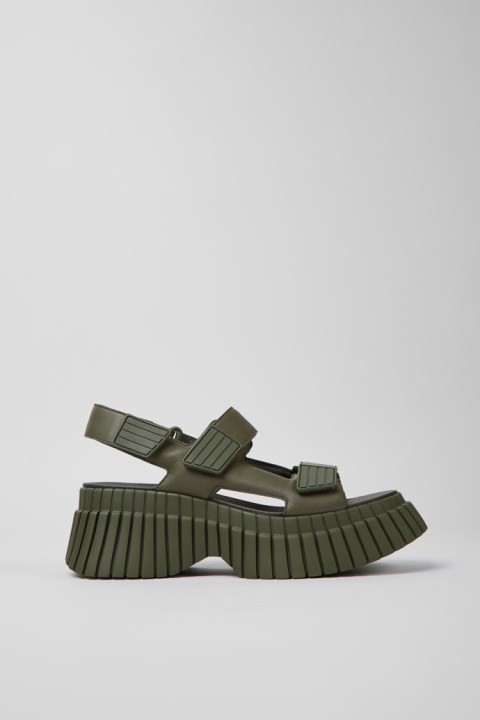 XL EXTRALIGHT® Dış Tabanlı, Yeşil Deri Platformlu Kadın Sandalet. Kalın Dış Tabanlı Cesur Bir Platform Olan BCN, Hacmi Ve Konforu Yeniden Tanımlıyor.