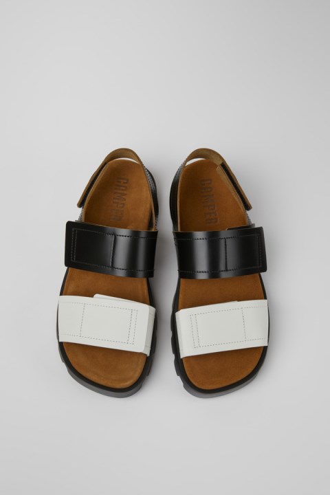 Camper Brutus Sandal Siyah Ve Beyaz Deri Sandaletler Kadınlar Için Yeni Gelenler