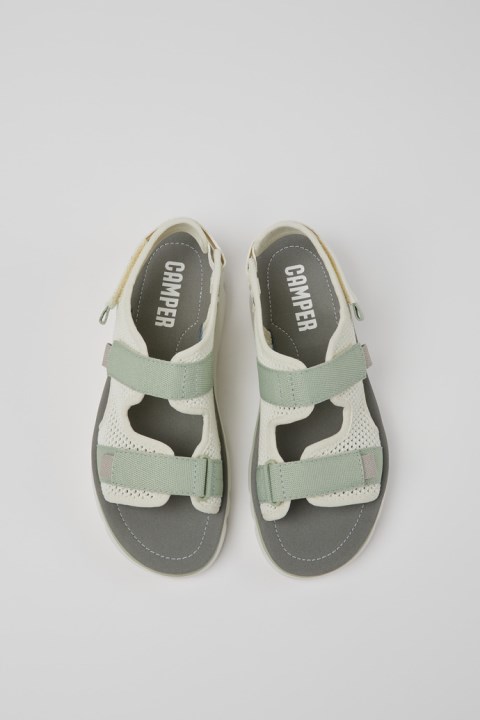 Beyaz, Yeşil Ve Gri TENCEL™ Lyocell Ve Geri Dönüştürülmüş PET Dokuma Kadın Sandaleti, XL EXTRALIGHT® Organix™ Dış Tabanlı (%30 Biyo-bazlı şeker Kamışı) Ve Cırtcırtlı Kapama Sistemi. İngilizce "tırtıl" Anlamına Gelen Oruga Kadın Sandaletlerimiz Esnek, Hafif Tabanlar Ve şehirli Bir Yaz Görünümü Sunar.