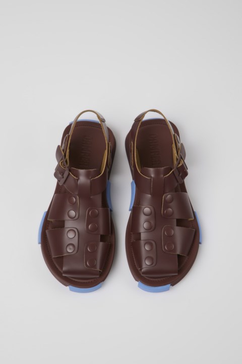 EVA Ve Kauçuk Dış Tabanlı (%20 Geri Dönüştürülmüş) Bordo Deri Kadın Sandalet. Setimiz, Ayağı Ve Gezegeni Destekleyen Geri Dönüştürülmüş Malzemelerden Yapılmış çok Malzemeli Askılara Sahip Hafif Bir Stildir.