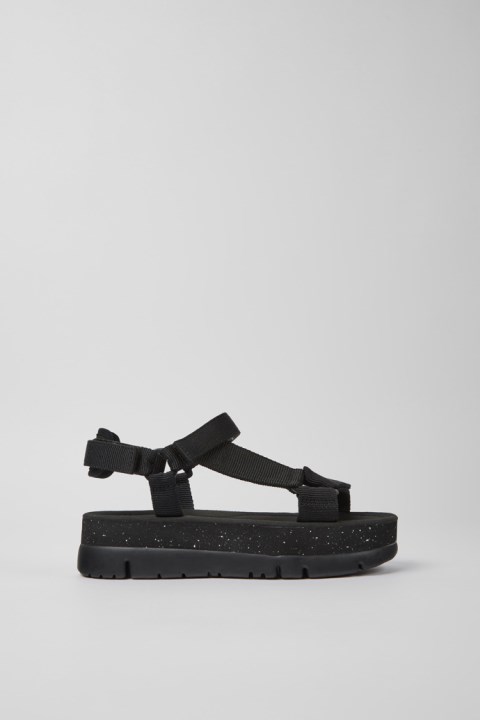%100 EVA Orta Tabanlı (%20 Geri Dönüştürülmüş), XL EXTRALIGHT® Dış Tabanlı (%51 Geri Dönüştürülmüş) Ve Cırt Cırtlı Kapama Sistemine Sahip, Geri Dönüştürülmüş Siyah PET Kadın Sandalet. Oruga Up Sandaletlerimiz Yaz Günleri İçin Tasarlandı Ve Daha Fazla Yükseklik Ve Kullanılması Bir Görünüm İçin Kalın, Karakteristik Bir Tabana Sahip.
