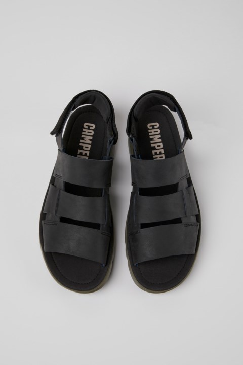 Oruga Siyah Deri Ve Tekstil Erkek Karavan Sandaletleri Yeni Gelenler