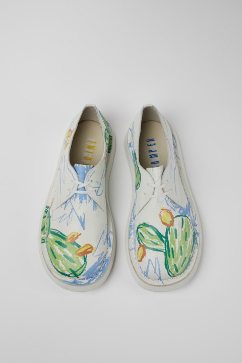 %100 Kauçuk Dış Tabanlı (%51 Doğal) Beyaz Baskılı Deri Bağcıklı Erkek Ayakkabısı. 1988'de Doğan Klasik TWINS Konseptimiz - Zıt Ama Tamamlayıcı - Ayakkabıların Aynı Olması Gerektiği Fikrine Meydan Okuyor Ve Bu Uyumsuz Erkek Ayakkabılarında Yaşıyor Gerçekleştiriyor Eşsiz Bir çift Oluşturmak İçin.