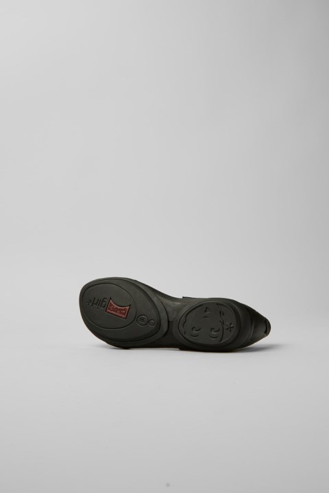 EVA Taban İçli Siyah Sırçalı Deri Elastik Bantlı Sandalet. Sağ Kadın Balerinlerimiz, Terliklerin Esnekliğini şehir Sokakları İçin Dayanıklı Kauçuk Taban Korumasıyla Birleştiriyor.