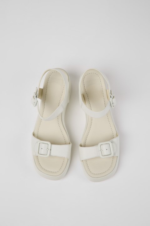 OrthoLite® Recycled™ çıkarılamayan Taban Tabanlı Ve PU Dış Tabanlı Beyaz Deri Kadın Sandalet. Fütürizm Ve Brütalizm'den İlham Alan Cesur, Çağdaş Bir Tasarıma Sahip Kaah Sandaletlerimiz, Avangart Stile Eğlenceli Bir Dokunuş Katıyor.
