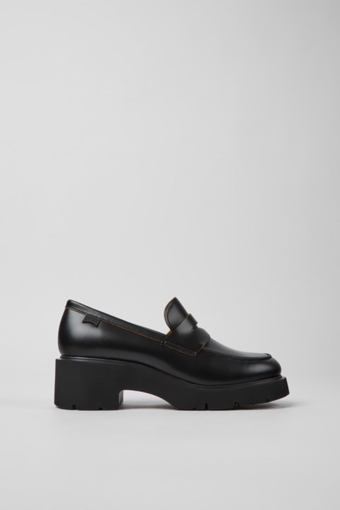 OrthoLite® Recycled™ çıkarılamayan Taban Tabanlı Ve EVA Dış Tabanlı Siyah Deri Kadın Makosen Ayakkabı. Milah, Ekstra Duruş İçin Kalın Dış Tabanıyla Günlük Kullanıma Uygun Kalın Bir Stildir.