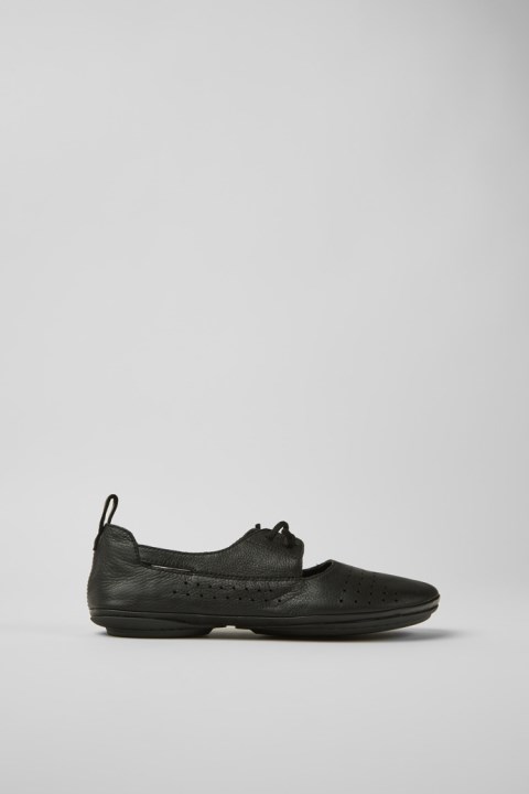 Kauçuk Tabanlı, Siyah Deri Kadın Ayakkabısı. İlk Olarak 2005 Yılında Piyasaya Sürülen Sağ, Balerin Terliklerinin Esnekliğini Sokağa çıkma Hazır Kauçuk Tabanların Dayanıklı Korumasıyla Birleştiriyor.