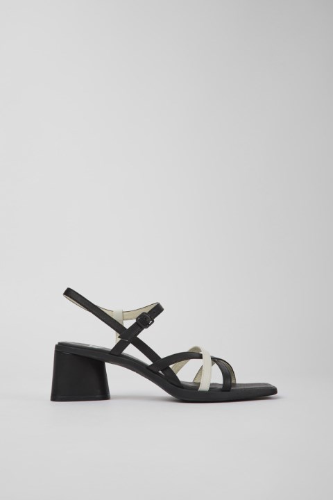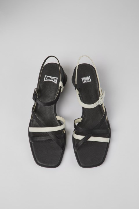 OrthoLite® Recycled™ çıkarılamayan Taban Tabanlı Ve Kauçuk Dış Tabanlı Siyah Ve Beyaz Deri Kadın Sandalet. 1988'de Doğan Klasik TWINS Konseptimiz - Zıt Ama Tamamlayıcı - Ayakkabıların Aynı Olması Gerektiği Fikrine Meydan Okuyor Ve Bu Uyumsuz Kadın Ayakkabılarında Yaşıyor Gerçekleştiriyor Eşsiz Bir çift Oluşturmak İçin.