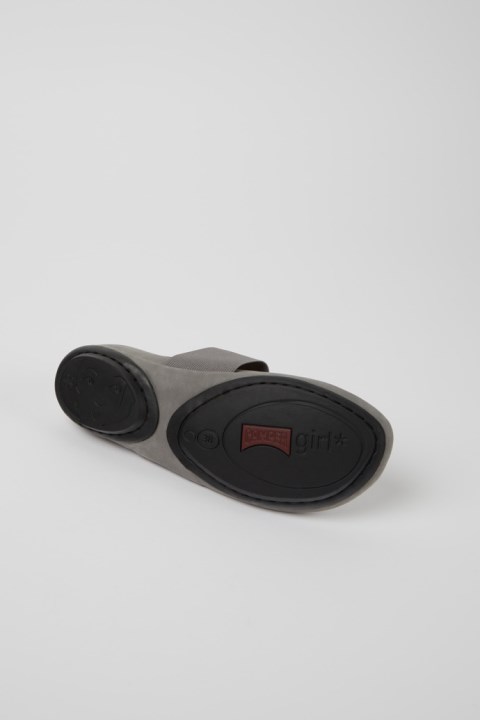 Kauçuk Dış Tabanlı (%20 Geri Dönüştürülmüş) Gri Nubuk Kadın Babet. İlk Olarak 2005 Yılında Piyasaya Sürülen Sağ, Balerin Terliklerinin Esnekliğini Sokağa çıkma Hazır Kauçuk Tabanların Dayanıklı Korumasıyla Birleştiriyor.