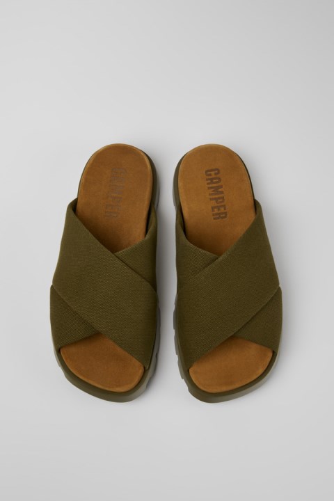 XL EXTRALIGHT® %100 EVA Dış Tabanlı Yeşil %100 Geri Dönüştürülmüş Pamuklu Erkek Sandalet. Camper'ın Ikonik Brutus Ailesinin Yeni Üyesi Olan Bu Minimalist Sandalet, Doğal Malzemeler Ve Ekstra Hafif Bir Tabana Sahiptir.