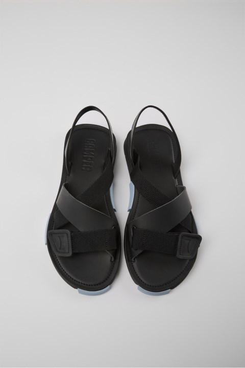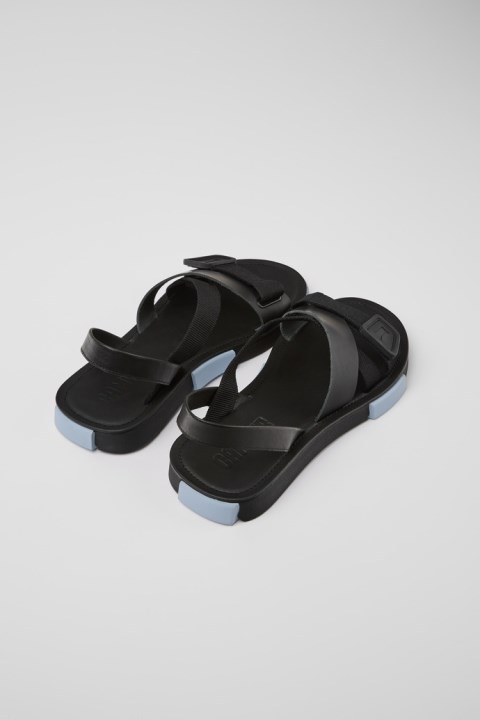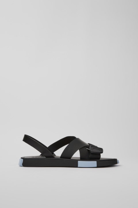 EVA Ve Kauçuk Dış Tabanlı (%20 Geri Dönüştürülmüş) Ve Cırt Cırtlı Kapama Sistemli Siyah Deri Ve Geri Dönüştürülmüş PET Dokuma Erkek Sandalet. Setimiz, Ayağı Ve Gezegeni Destekleyen Geri Dönüştürülmüş Malzemelerden Yapılmış çok Malzemeli Askılara Sahip Hafif Bir Stildir.