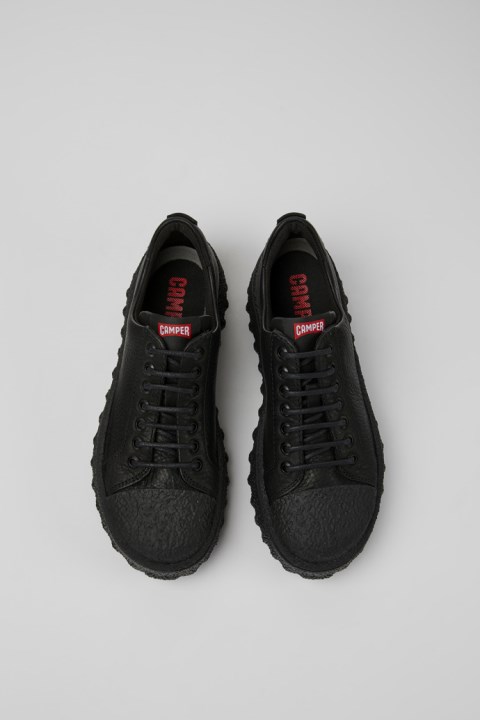 OrthoLite® Recycled™ İç Tabanlı Ve Michelin Kauçuk Dış Tabanlı (%27 Doğal) Siyah Deri Kadın Ayakkabısı.Ground, Endüstriyel Camper Estetiğine çağdaş Bir Dokunuş Ekleyerek Kentsel Sokak Stilini Yorumluyor.