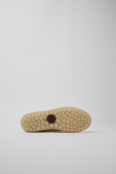 Kadınlar İçin Beyaz Ayakkabı. Bağcıklı %100 Deri Saya. %100 Bej Kauçuk Dış Taban. Biraz Daha İyi, Asla Mükemmel Olmayan Pelotas Kadın Ayakkabılarımız, En Ikonik Camper Stilimizdir. 87 Küreden Oluşan, Kusursuz, Spordan İlham Alan Bir Dış Tabana Sahip Pelotas - English "toplar" - Köklerine Sadık Kalarak Her Sezon Oyununu Değiştirmeye Devam Ediyor.