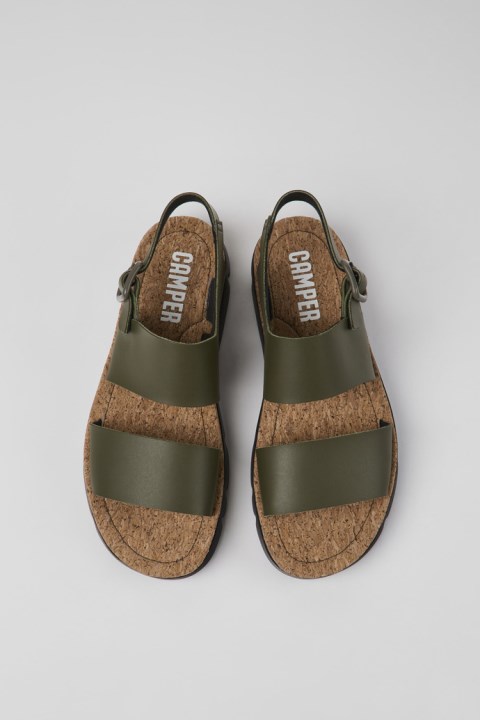 Kadınlar Için özel Camper Oruga Yeşili Deri Sandaletler