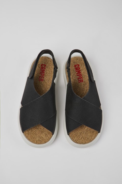 Anatomik, çıkarılamayan EVA Tabanlık Ve XL EXTRALIGHT® Organix™ 3.0 Dış Tabanlı Siyah Beyaz Deri Kadın Sandalet. Hacmi Tasarım Sadeliğiyle Birleştiren Pelotas Flota, Rahatlık Ve Yastıklama Sunan Doğal Tabanlı Bir Dış Tabana Sahiptir.