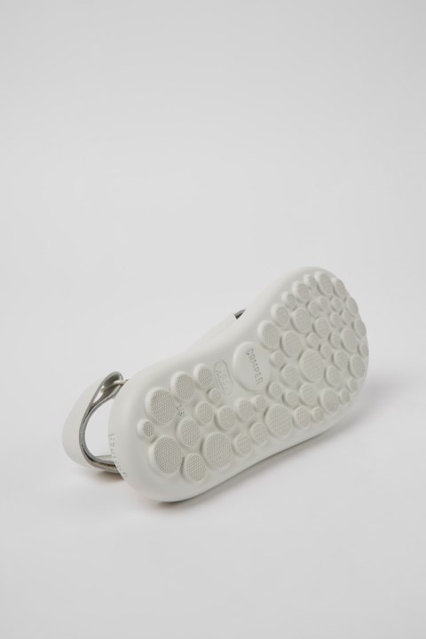 Anatomik çıkarılamayan EVA Tabanlıklara Ve XL Extralight Organix 3.0 Dış Tabanlı (%30 Biyosirküler Bileşik) Beyaz Deri Kadın Sandaleti. Hacmi Tasarım Sadeliğiyle Birleştiren Pelotas Flota, Rahatlık Ve Yastıklama Sunan Doğal Tabanlı Bir Dış Tabana Sahiptir.