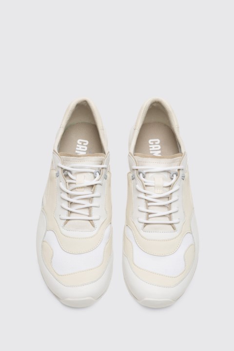 Kadın Beyaz Ve Krem Spor Ayakkabı. Sırçalı Deri Ve Kumaş. Klasik Silüetler, Katmanlı Malzemeler Ve Dişli Dış Taban, Nothing'imizin Retro Havasını Vurgular.