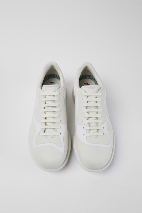 Design Twins Krem Ve Beyaz Deri Bağcıklı Spor Ayakkabı Karavan