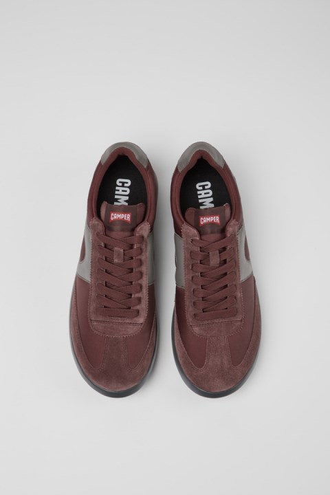 EVA Dış Tabanlı Bordo Ve Gri Nubuk Ve Geri Dönüştürülmüş PET Erkek Spor Ayakkabı. Yenilenen şekli Ve Yumuşak Dış Tabanıyla Geliştirilmiş Pelotas XL, şehir Ayakkabılarına Yeni Bir Yaklaşım Sergiliyor.