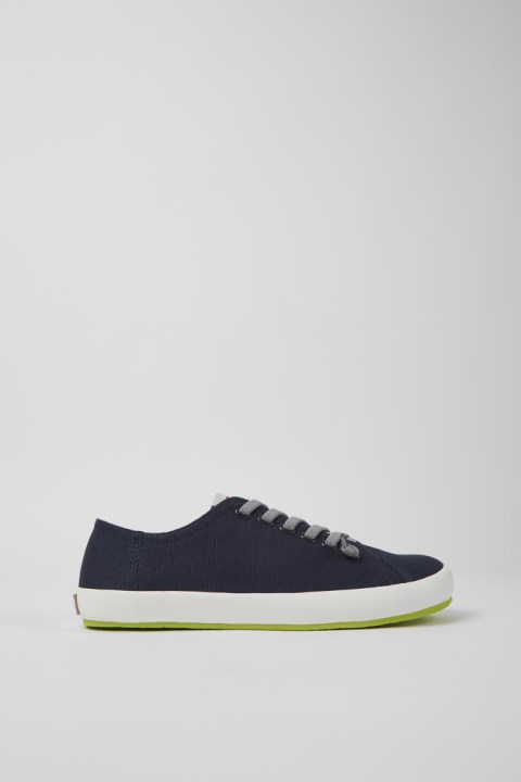 OrthoLite® Recycled™ öldürücü Tabanlıklara Ve Kauçuk Dış Tabanlı Mavi Tekstil Erkek Spor Ayakkabı. Peu Rambla'mız, Eğlenceli Bir Dokunuşla Günlük Bir His İç Karakteristik Zikzak Bağcıklara Ve Karışık Malzemelere Sahiptir.